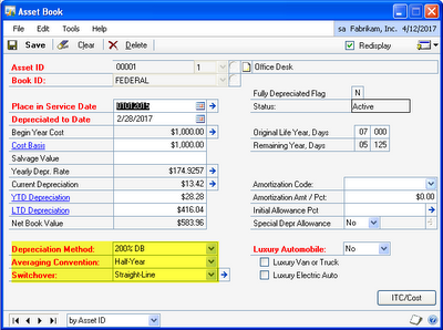 A question I run into rather regularly from users is 'Where do I enter the MACRS tables?'. Well, the short answer is, you don't. GP doesn't utilize MACRS tables for calculating MACRS depreciation. Instead, it uses a combination of the many different depreciation methods and averaging conventions available in GP to simulate MACRS.