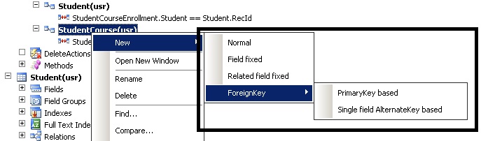 In order to implement this scenario in Dynamics AX 2012. We would first need to create three tables Student, StudentCourse and StudentCourseEnrollment.