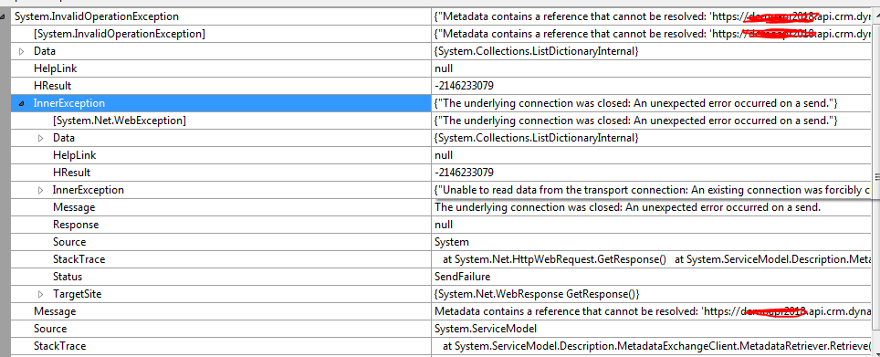 {"The underlying connection was closed: An unexpected error occurred on a send."}