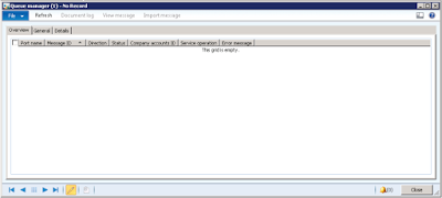 For adapter-based exchanges, you can use the Microsoft Dynamics AX batch functionality to start and stop the operation of the four services that move messages into and out of the document processing queues. After documents are exchanged, you can monitor the activity of documents in the queues, and edit and resubmit documents that have errors by using the Queue manager form. (ClickSystem administration > Periodic > Services and Application Integration Framework > Queue manager.)