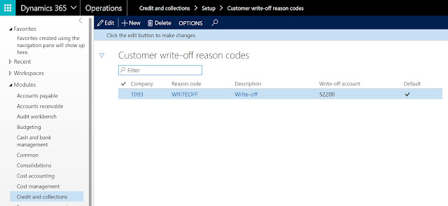 Dynamics 365 for Ops - Customer Write-off Reason Codes