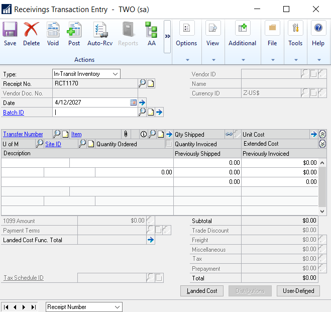 Dynamics GP - In Transit Documents and Reversal