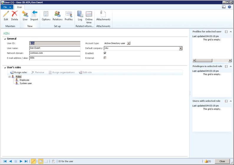 8. Select the default company that should be opened when the user connects in the Default company field.
