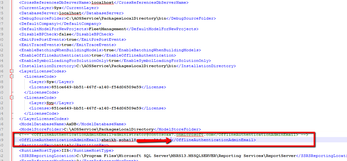 Step-1 Check for the “OfflineAuthenticationAdminEmail” key in file “DynamicsDevConfig” in AOSService -> PackagesLocalDirectory->Bin to be set to the correct login email that you are using.