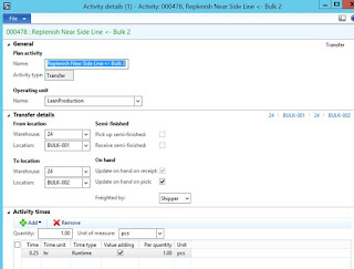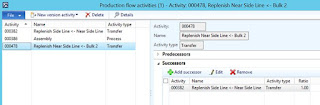 Production flow: Activity = Replenish Near Side Line <- Bulk 2 (Assign transfer locations)