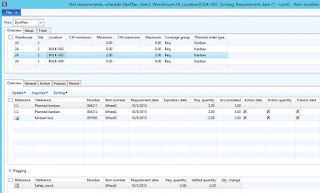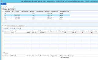 Now we'll look at Net requirements for Wheel2 item. There we can see how planned kanban has been generated to cover Minimum stock requirement for Wheel2 item