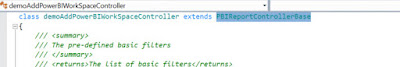 6. Create a Display Menu Item 'demoAddPowerBiDisplay' and also create a controller class 'demoAddPowerBIWorkSpaceController' and extends with 'PBIReportControllerBase'