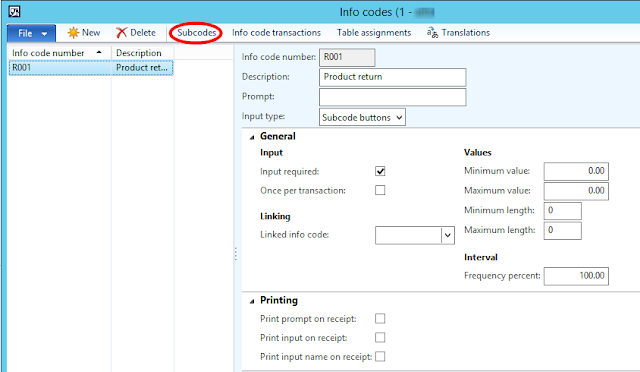 Now, run the '1030 - Info code information' Distribution schedule under Retail>>Periodic>>Data distribution>>Distribution schedule to push the changes out to the retail channels.