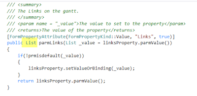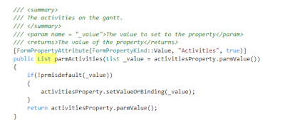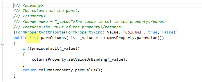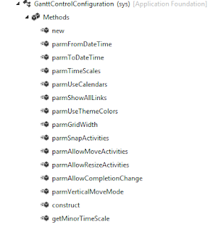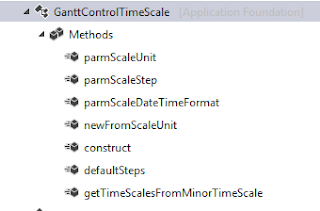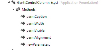 Columns: These are the column on a Gantt chart grid and are stored in the class GanttControlColumn as a contract. The below parm methods store the Columns information. The alignment is controlle d by SysAlignment base enum