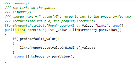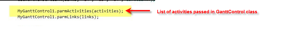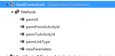 Links : Links are used to connect two activities on a Gantt control. The Link information is stored as a data contract in the class GanttControlLink.