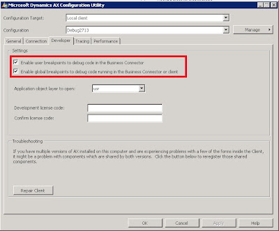 Today I would like to discuss how to debug X++ code in a batch server. One of the common scenarios in AX development is the debugging of X++ code in the client.