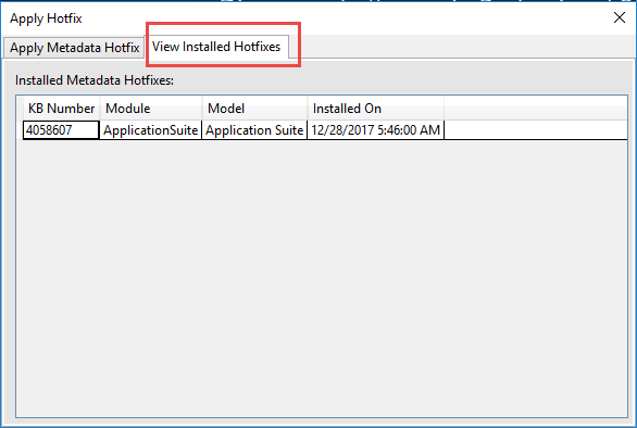 Note: In my case, Hotfix is for ApplicationSuite Model.