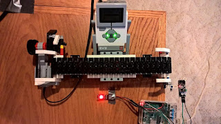 Please see below my setup with Lego Mindstorms EV3 robot (conveyor belt) to simulate a production line, I used obstacle detection sensor to count how many products are being produced on the production line