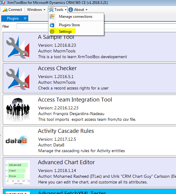 Download PluginInstall in XRMToolBox by clicking Settings->Path->Storage folder->Plugin folder.