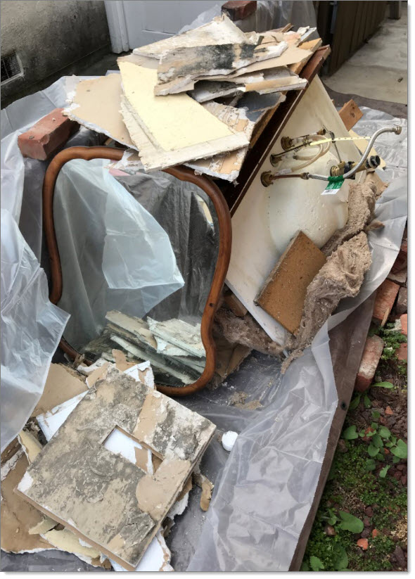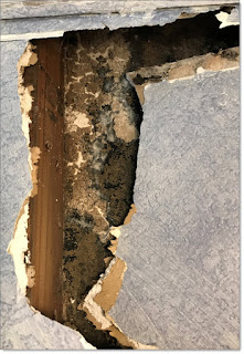 Sam: "Steve, I think I found what the extra drywall was covering up. It looks like the old bath tub and old toilet on the second floor that we replaced 3 years ago were leaking."