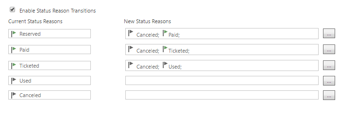 Now in the CRM form you will notice that it will remove the invalid state transitions from the available status reasons. For example, if my record is on status reason “Reserved” I cannot change it to “Ticketed” because I need to mark it as paid first: