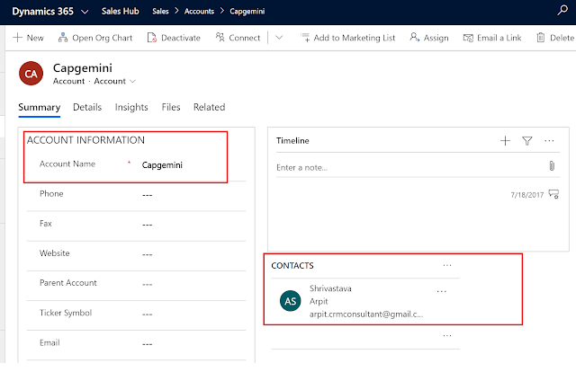 Create Parent Record in Dynamics 365 and map it in it's Child Records.Let suppose, I have to create a Contact in D365, however, in order to do that first I need to have an Account record created in D365.