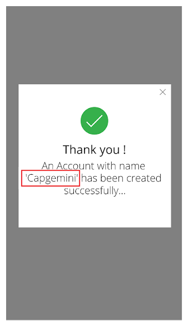 // Navigate to Success Screen and Show newly created Account Name in Success Msg