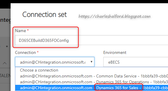 Give your Connection Set a relevant name and try to be consistent in your naming conventions, this will make your life easier in the long run. Select your D365 Sales instance for the first Connection and then the D365 FinOps environment for your second. If these don't appear, it's likely due to security permissions.