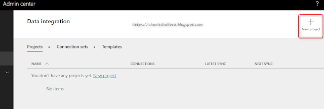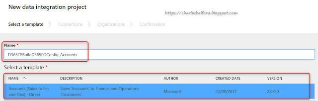 By clicking New project, you can give your project a name (remember to be consistent), select a Template, select the Connection Set and select your Organization (environment). It's worth noting that you can't change these details in the future, so if something changes you would need to create a new project i.e. if your Business Unit name is changed in Customer Engagement, your project would fail. Then you would need to create a new Connection Set, save your project as a template and create a new one from the template.