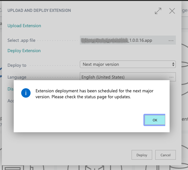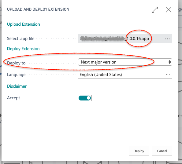 Choose you new .app file and select Deploy to: Next major version, and Deploy