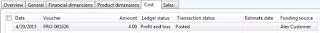 Ledger voucher provides details on which account was credited for “Project – payroll allocation” and which account was debited for “Project – cost”
