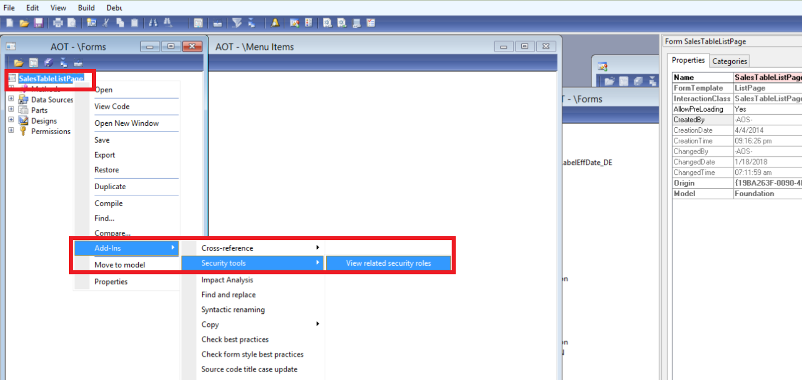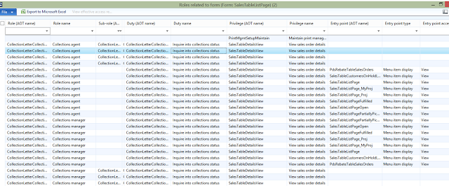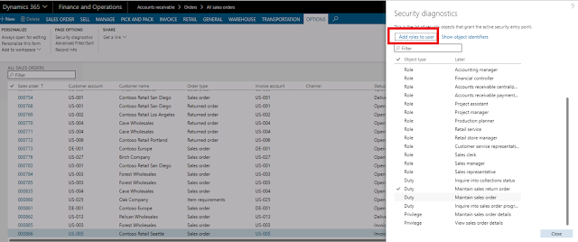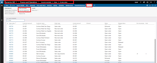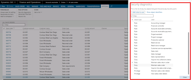 In Dynamics 365, you can view the security diagnostics for any page from GUI without opening visual studio (or opening AOT like AX 2012)