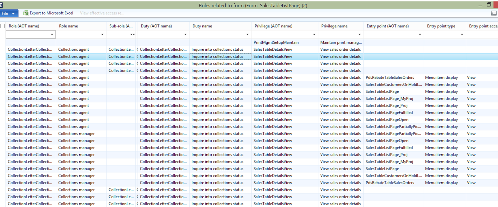 you can see all security diagnostics that related to this page (roles-duties-privileges)