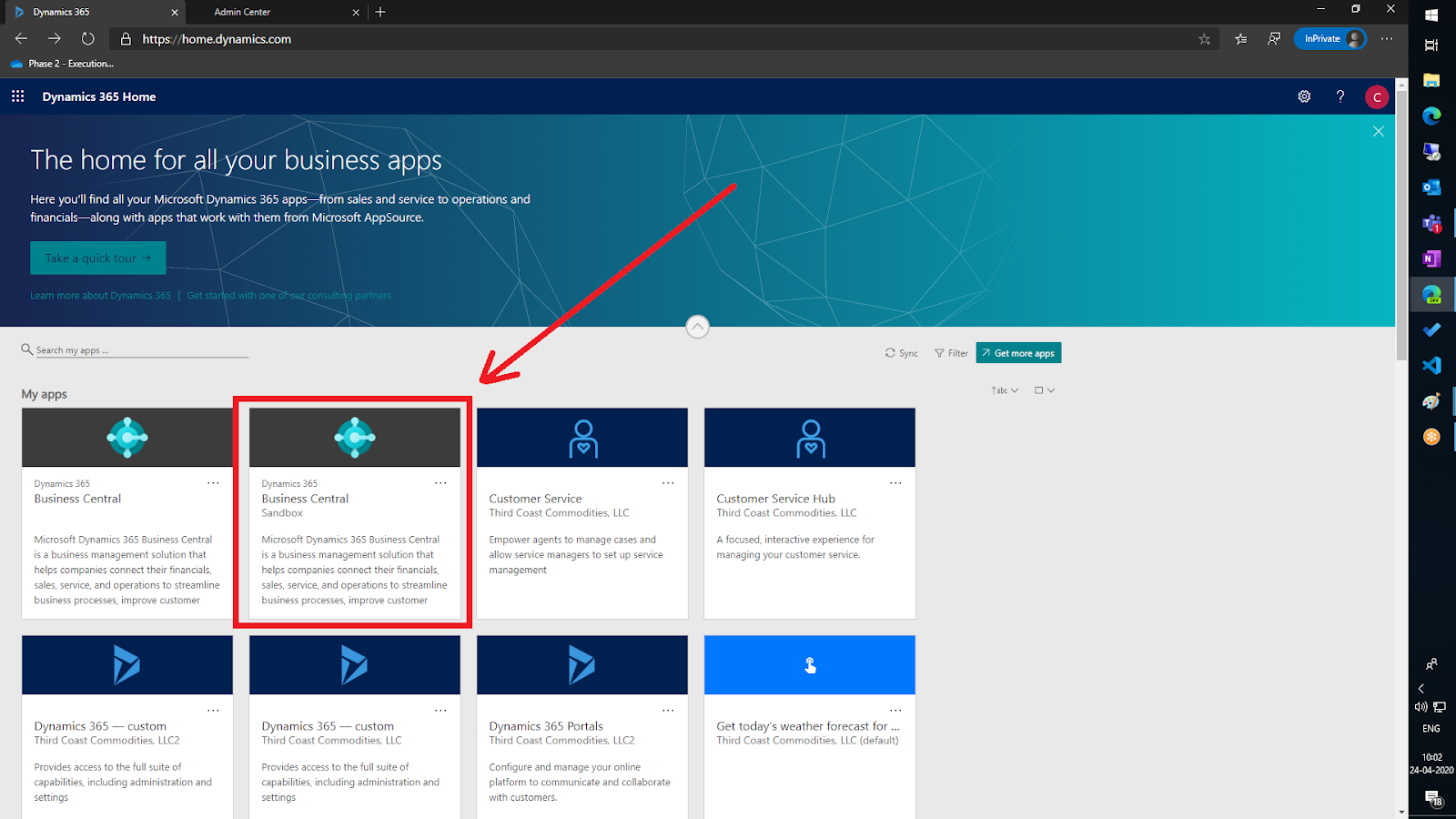 Today, as I was logged into my client's tenant in https://home.dynamics.com everything was normal until I clicked on Sandbox