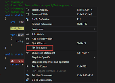 While debugging code we have frequently hover over data tips in order to see the values contains in variables. In VS we can pin the data tip for the variable to give our-self quick access. To pin the data tip, click the pin icon while hovering over it. You can pin multiple variables.