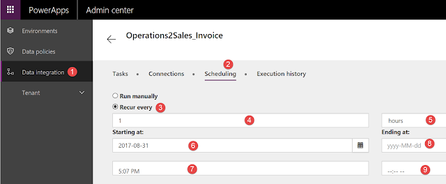 - From the below screen you will be able to (1) modify a task map, (2) Schedule project (Continuous auto-execution), and (3) look at the Execution History (This is where you will be able to see errors/warning if they happen).