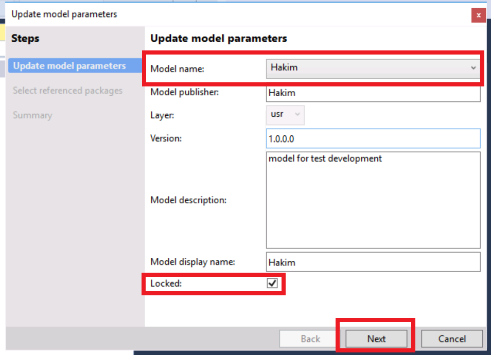 just go to dynamics 365 in visual studio and click model management to update model parameters