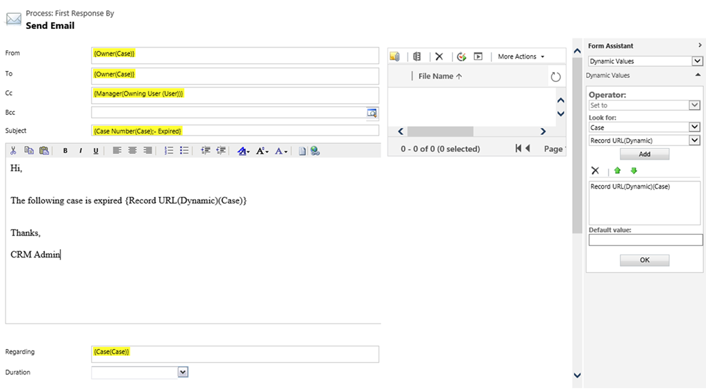 The screenshot above shows that the email will be sent from the Owner of the case to himself/herself and also to the customer service manger so that the manager can look into this prior if any complexity.