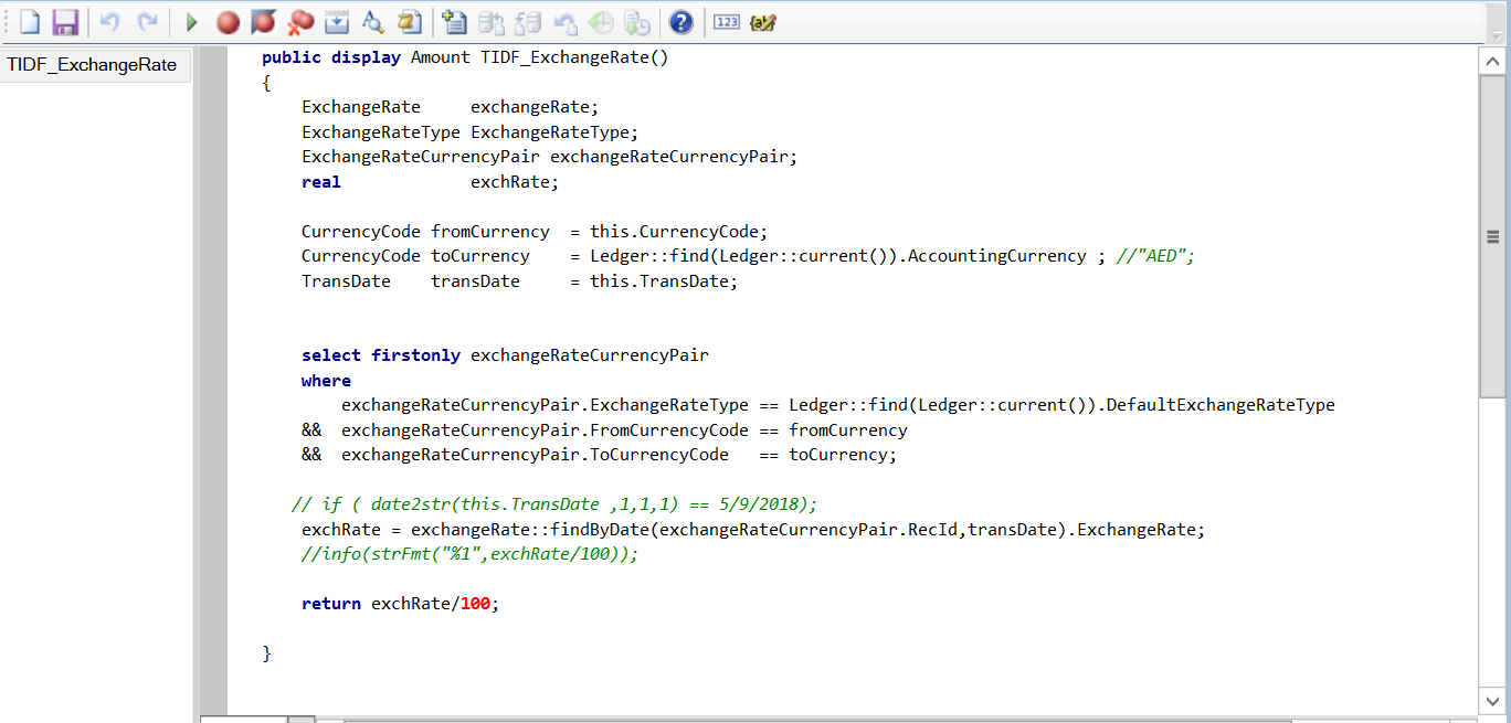 CurrencyCode toCurrency = Ledger::find(Ledger::current()).AccountingCurrency ; //"AED";