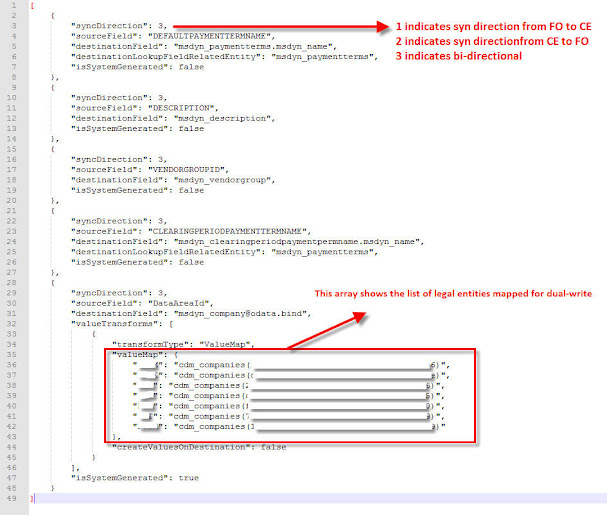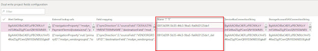 2. Field mapping field holds information on how fields are mapped between both apps (Finance Operations app and Common Data Service)