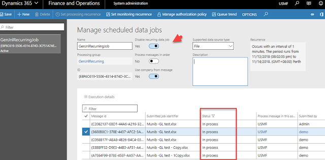 There are a few reasons a scheduled data job may not execute. I made a silly mistake and it seemed as though the jobs where stuck on “In process”.