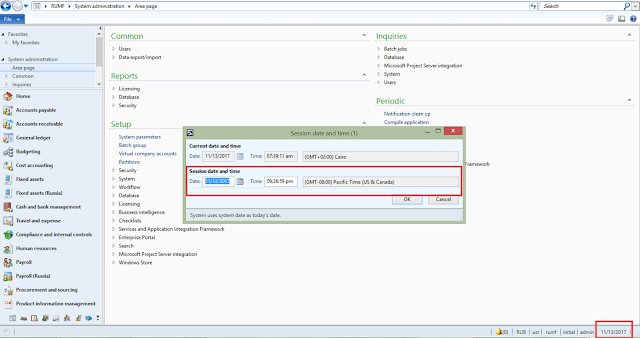 In AX 2012, to change session date and time