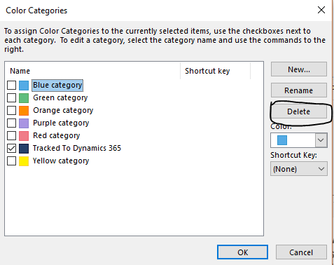To disable the special Tracked to Dynamics 365 Outlook category, you need to enable the OrgDBOrgSetting in your Dynamics 365 for Customer Engagement apps organization. Dynamics 365 for Customer Engagement apps provides the OrgDBOrgSettings tool that gives administrators the ability to implement specific updates that were previously reserved for registry implementations.