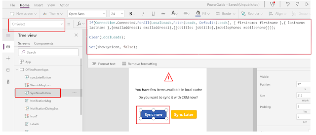 Step (c): Add following formula on Sync Later button (OnSelect Property)