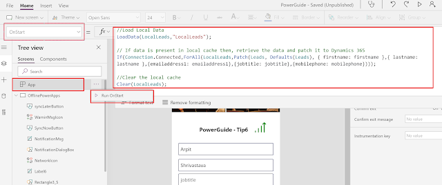- Caching Data in the App.OnStart formula on a first run. (using SaveData)