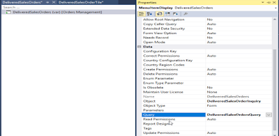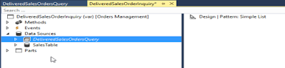 4. Add query “DeliveredSalesOrdersQuery” in form DeliveredSalesOrderInquiry and set pattern as simple list.