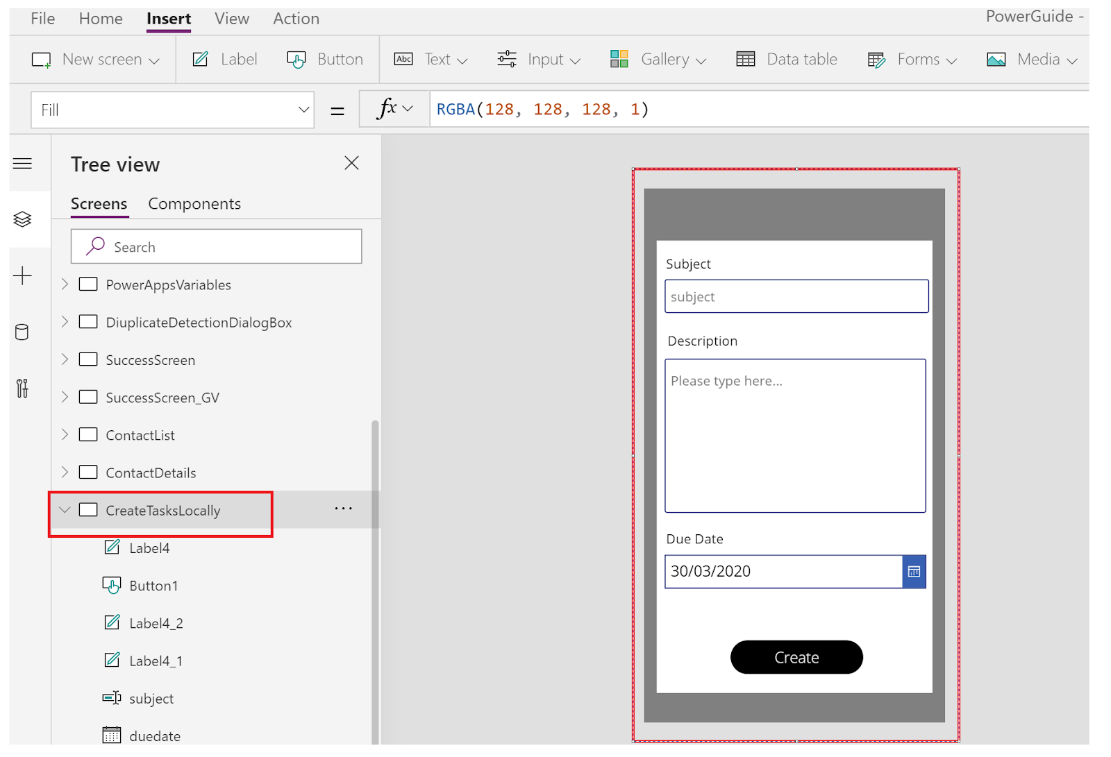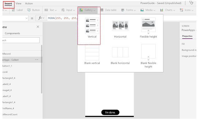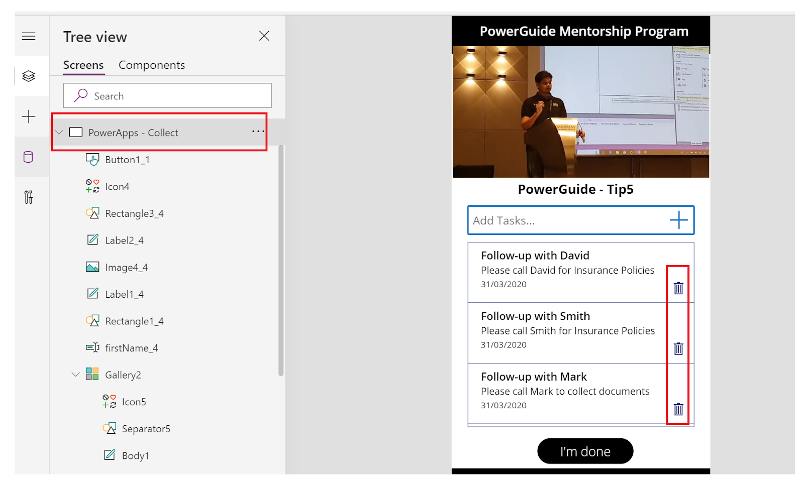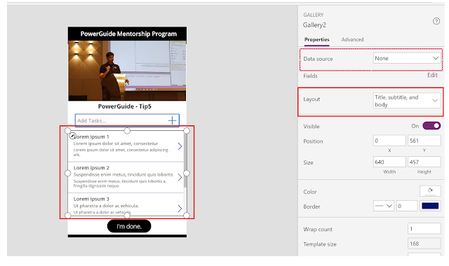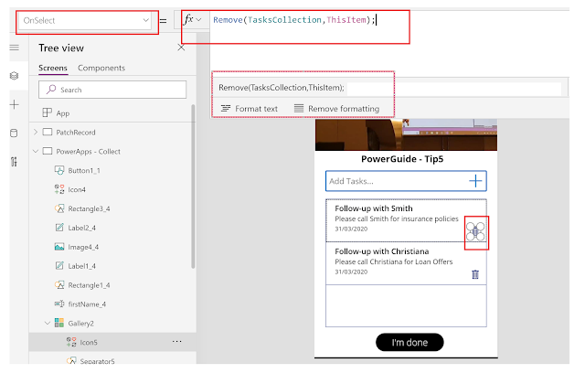 Step 5: Set the Collection as a Data Source to Task Gallery in Screen 1