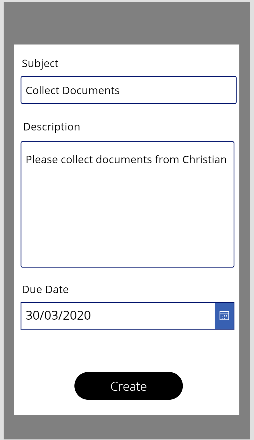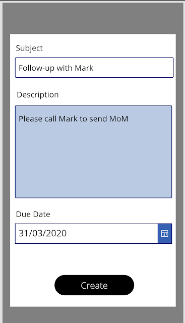Step 1: Create a Blank Canvas App with Blank Screen (ignore if you already have) > Connect it with Dynamics 365 Data Source > Connect with Task Entity