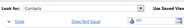 h. Search – Advanced find now has the “Does not equal” operator. For example - I want to find all contacts which are not in the State of NY.