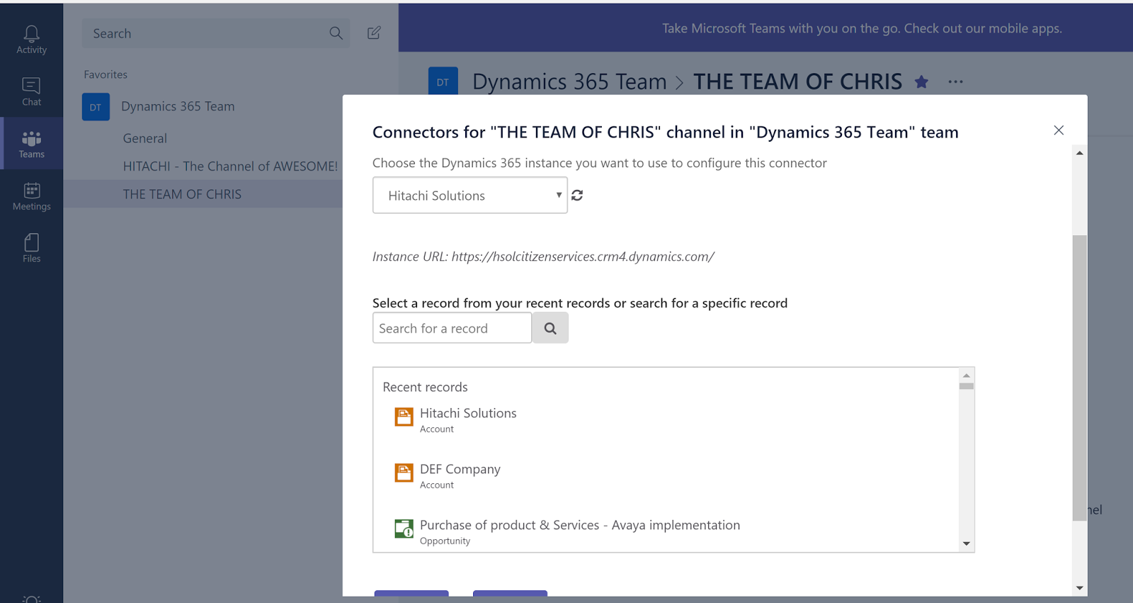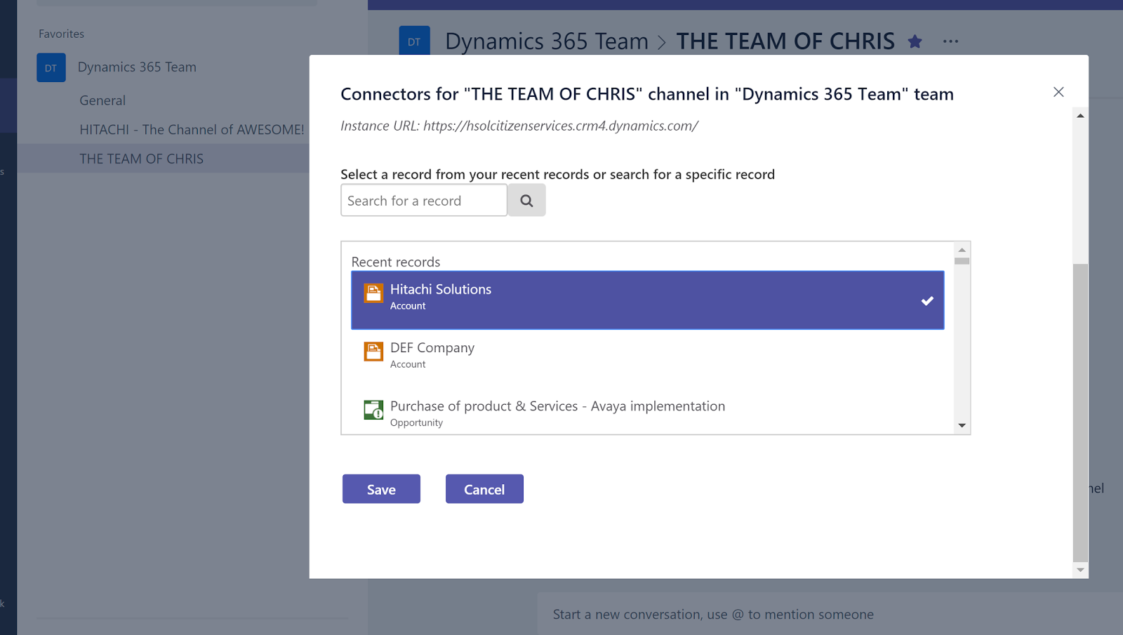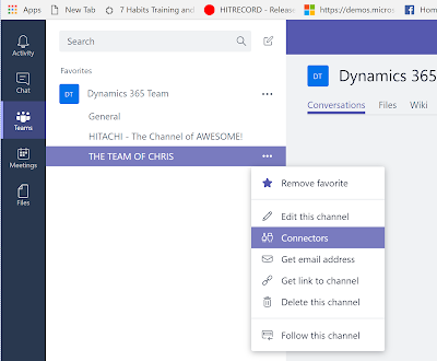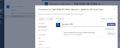 The solution: I created an MS flow to interact with Teams and D365 Customer Engagement. It solves a lot of the problems that you would generally perceive with the MS Teams and D365 connector. IE… It doesn’t only look at Accounts, Leads and Opportunities. Because flows are pretty easy to create. I reckon this solves a lot of thaw current connector gaps.