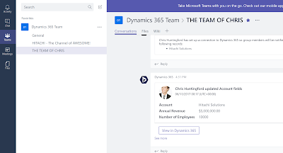 I can go into D365 Customer Engagement, search for the record, make my updates and then these will be posted to the Team Channel.