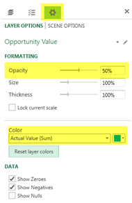 - Change the Chart Type for the Opportunity Revenue layer, in this example to a Bubble chart, as follows: