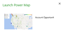 - If required, open the Microsoft Excel workbook and then open the Power Map report by selecting Launch Power Map from the Power Map button on the INSERT tab of the ribbon bar. When prompted, double-click the previously created Power Map report to open it.