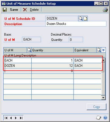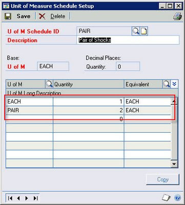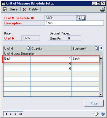 Note the 'Equivalent' in each Schedule. This is the key to GP making correct UOM conversions.