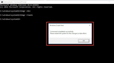 Close the information box and run command Slmgr /rearm in order to rearm the windows. When you run the command system will ask for the restart of the machine.